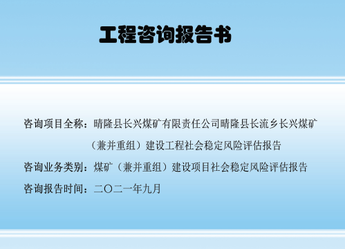 晴隆縣長興煤礦有限責任公司晴隆縣長流鄉長興煤礦(兼并重組)建設工程社會穩定風險評估報告