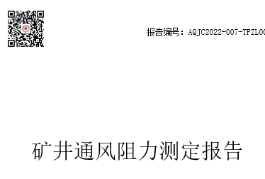 貴州林東礦業(yè)集團(tuán)有限責(zé)任公司黔西縣太來(lái)鄉(xiāng)泰來(lái)煤礦礦井通風(fēng)阻力測(cè)定