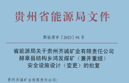 貴州齊誠礦業(yè)有限責(zé)任公司 赫章縣結(jié)構(gòu)鄉(xiāng)鴻發(fā)煤礦(兼并重組)安全設(shè)施設(shè)計(變更)
