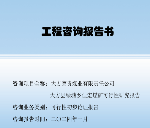 大方京貴煤業有限責任公司大方縣綠塘鄉佳宏煤礦可行性研究報告