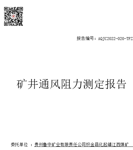 貴州魯中礦業(yè)有限責(zé)任公司織金縣化起鎮(zhèn)江西煤礦礦井通風(fēng)阻力測(cè)定