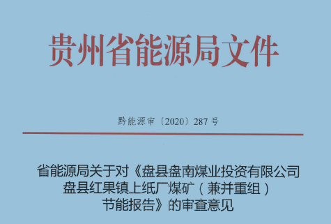 盤縣紅果鎮上紙廠煤礦(兼并重組)節能報告
