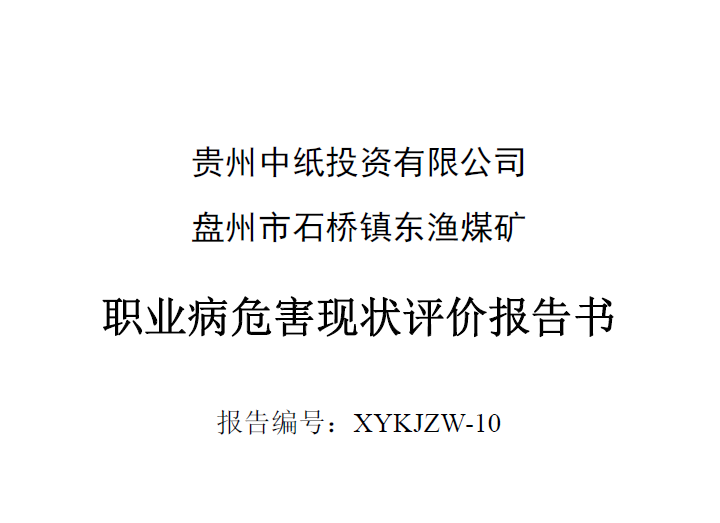 貴州盤江精煤股份有限公司火燒鋪煤礦羊場坡井區兼并重組項目(60萬噸/年)職業病危害預評價報告