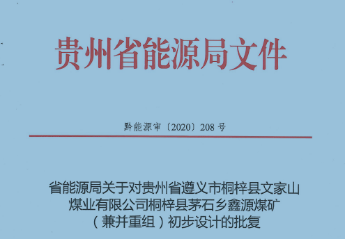 桐梓縣茅石鄉鑫源煤礦(兼并重組) 初步設計