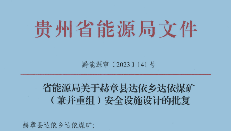 赫章縣達依鄉達依煤礦(兼并重組) 安全設施設計