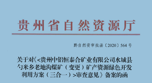 水城縣勺米鄉老地溝煤礦(變更) 礦產資源綠色開發利用方案 (三合一)