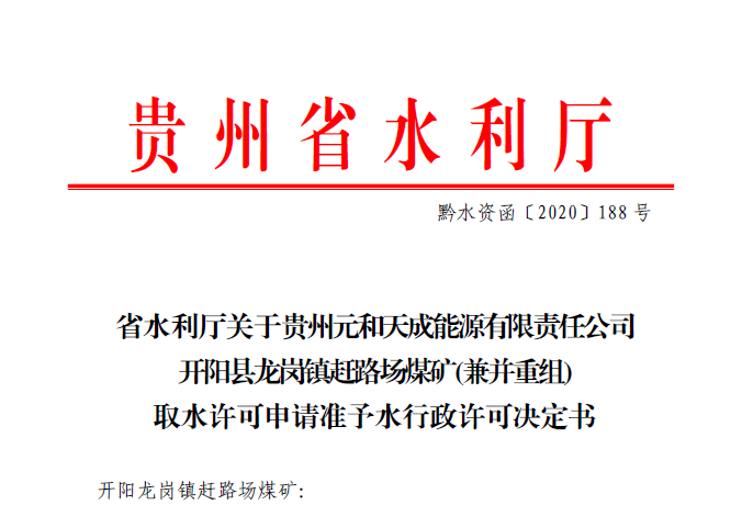 開陽縣龍崗鎮趕場路煤礦(兼并重組)水資源論證報告