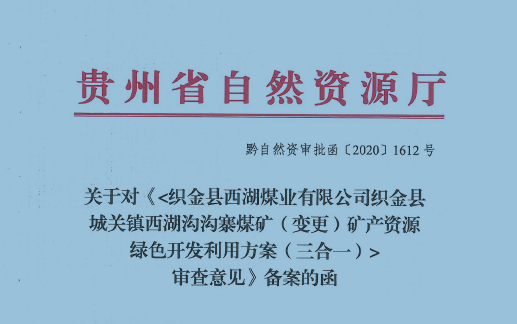 織金縣城關(guān)鎮(zhèn)西湖溝溝寨煤礦礦產(chǎn)資源綠色開發(fā)利用方案(三合一)