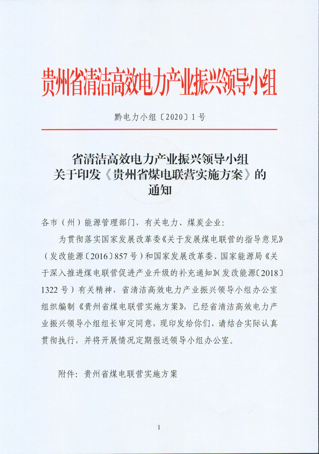 省清潔高效電力產業振興領導小組關于印發《貴州省煤電聯營實施方案》的通知