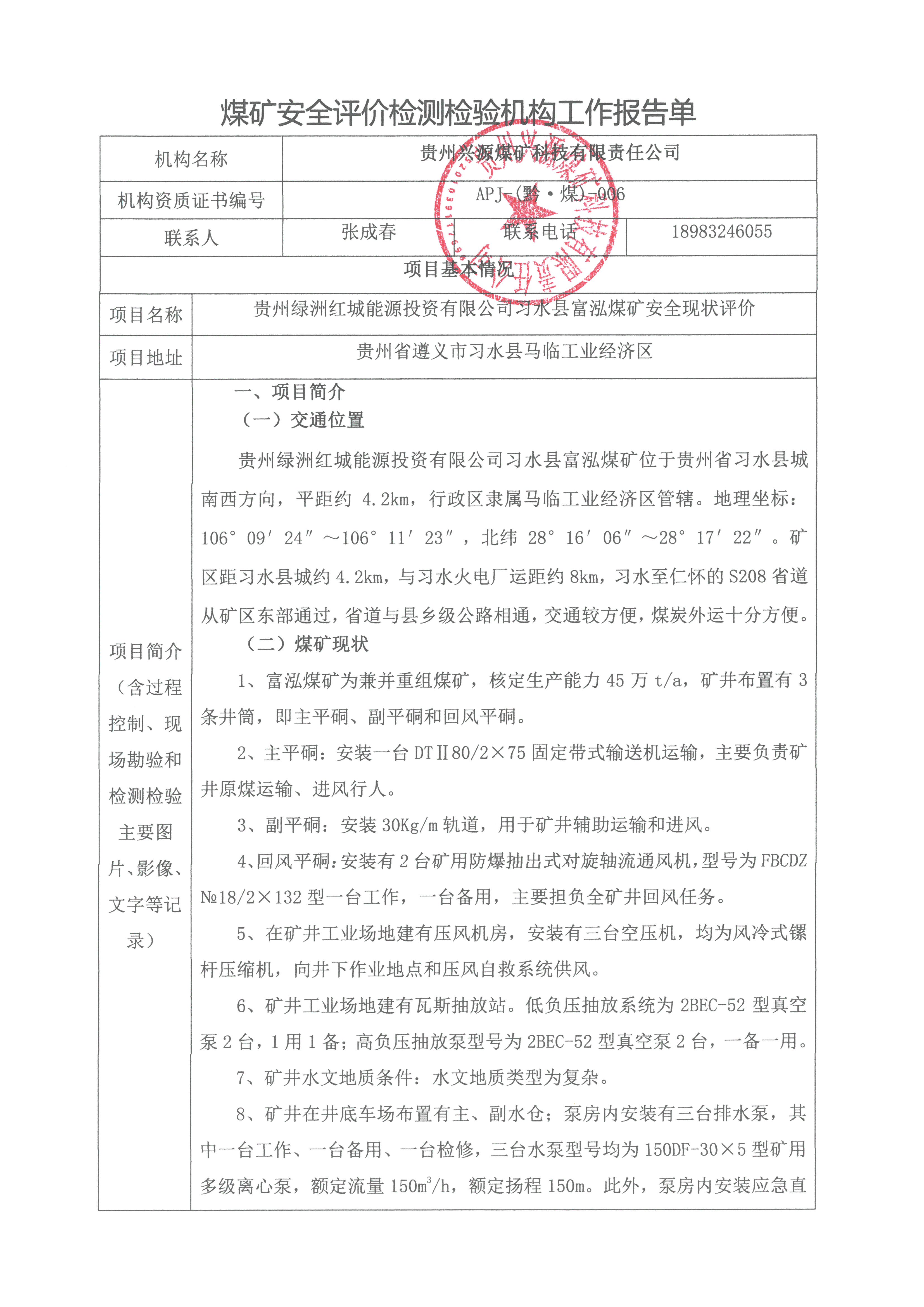 職業病危害評價機構從業告知書[貴州連云礦業有限公司興仁縣潘家莊鎮振興煤礦]