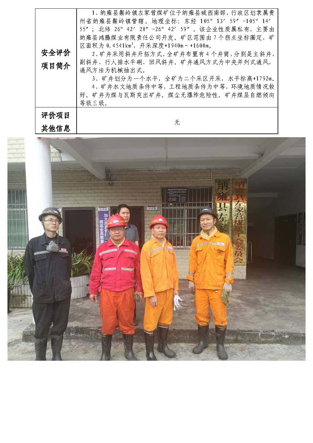 納雍縣鴻騰煤業(yè)投資有限責任公司納雍縣鬃嶺鎮(zhèn)左家營煤礦安全現(xiàn)狀評價網(wǎng)上公開信息表
