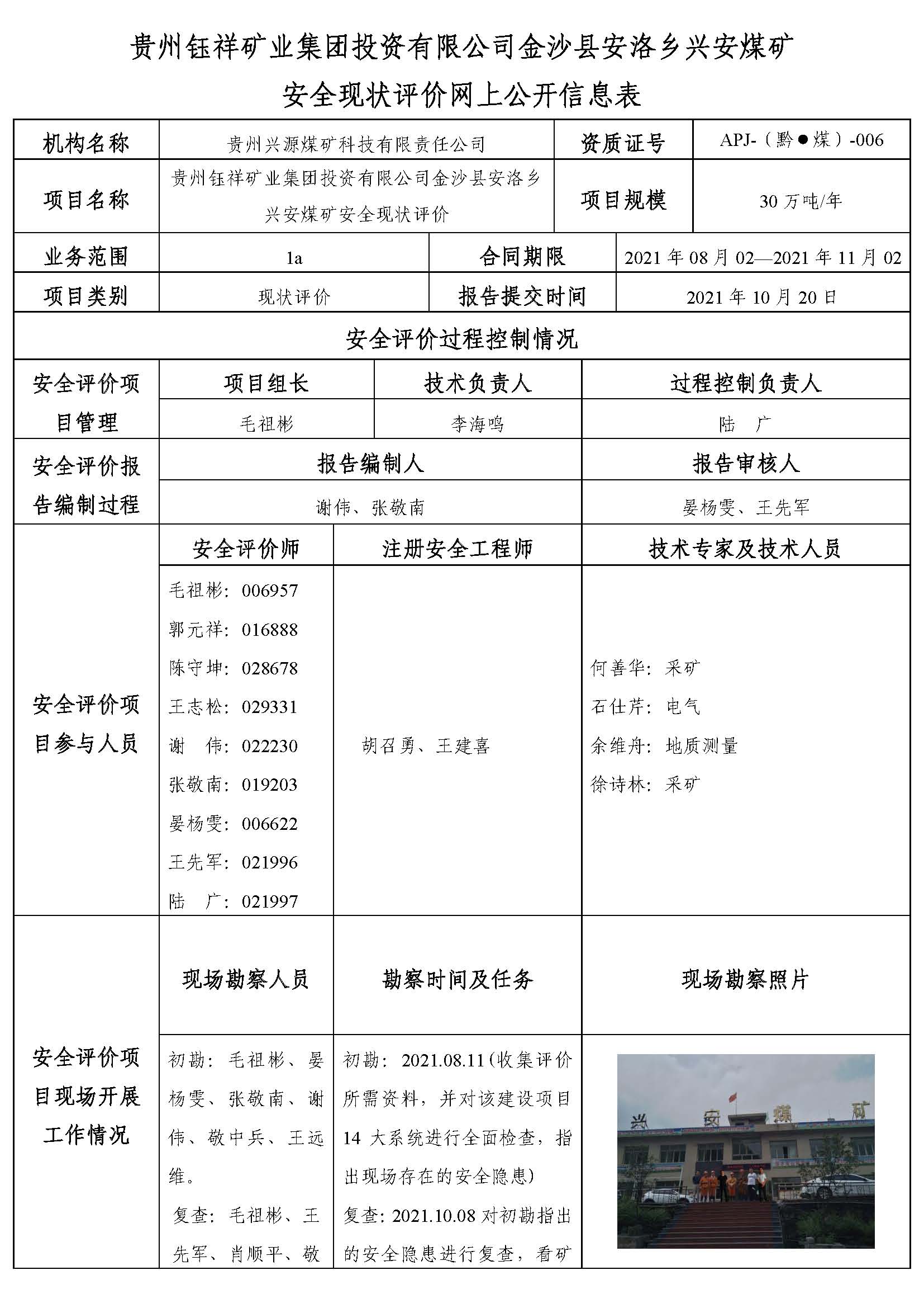 安全評價機構從業告知書(貴州泰昌安能源集團礦業有限公司興仁縣新龍場鎮桂興煤礦)