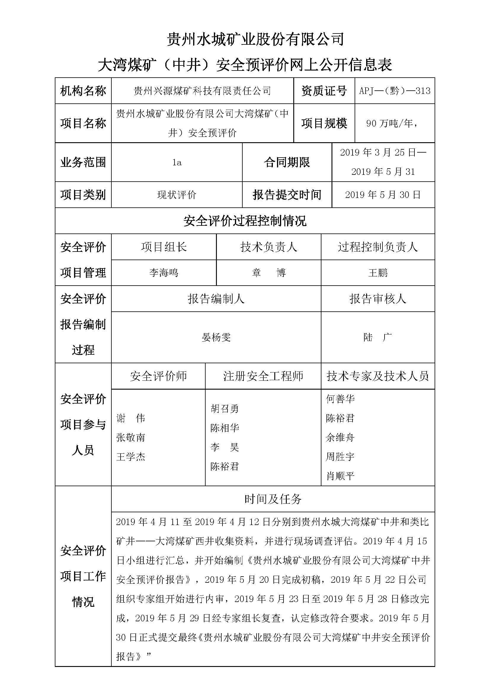 貴州水城礦業股份有限公司大灣煤礦(中井)安全預評價網上公開信息表