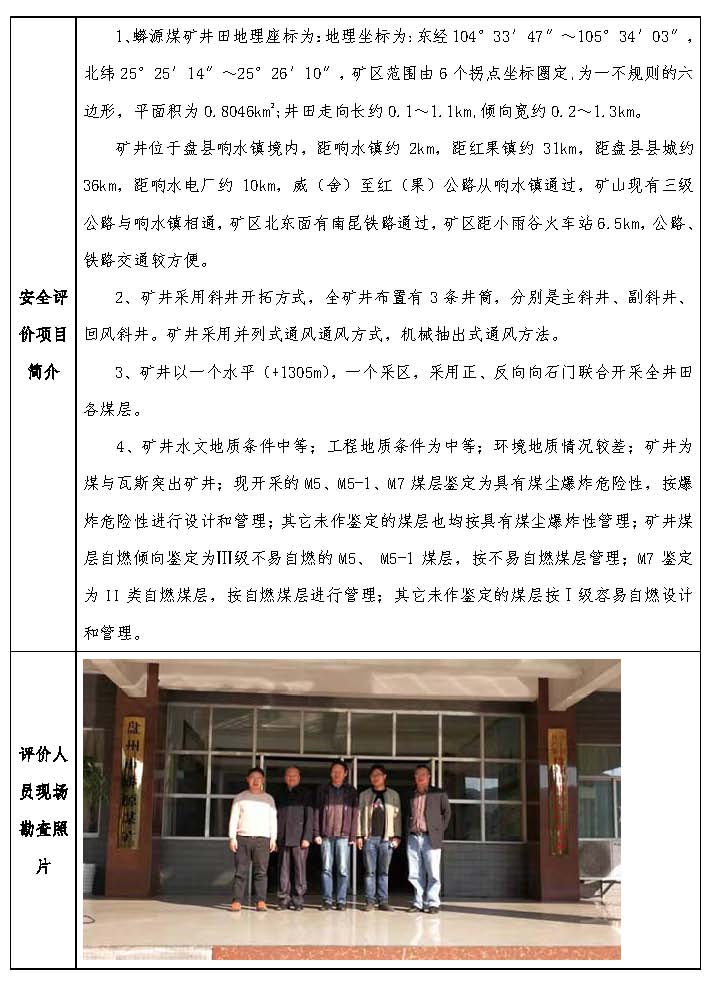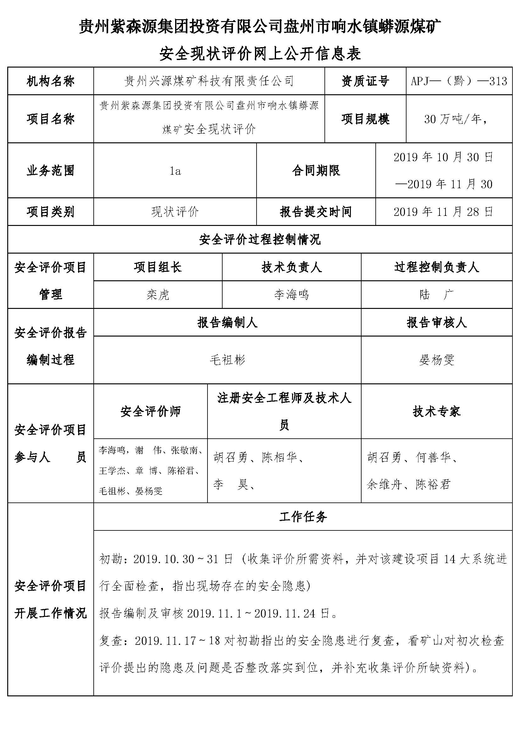 貴州水城礦業股份有限公司 鐘山區大河邊煤礦安全現狀評價報告網上公開信息表