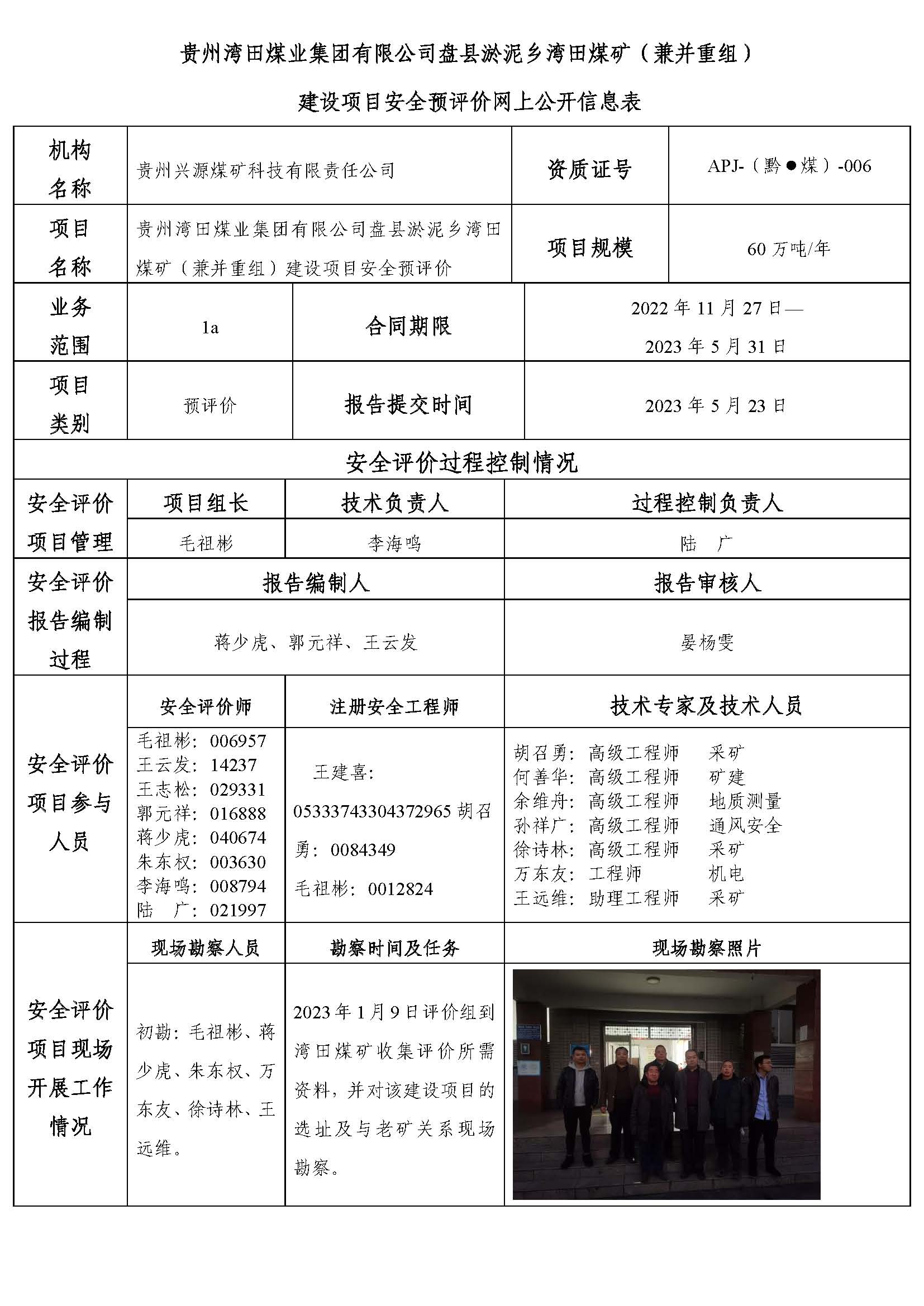貴州灣田煤業(yè)集團有限公司盤縣淤泥鄉(xiāng)灣田煤礦(兼并重組) 建設(shè)項目安全預(yù)評價網(wǎng)上公開信息表