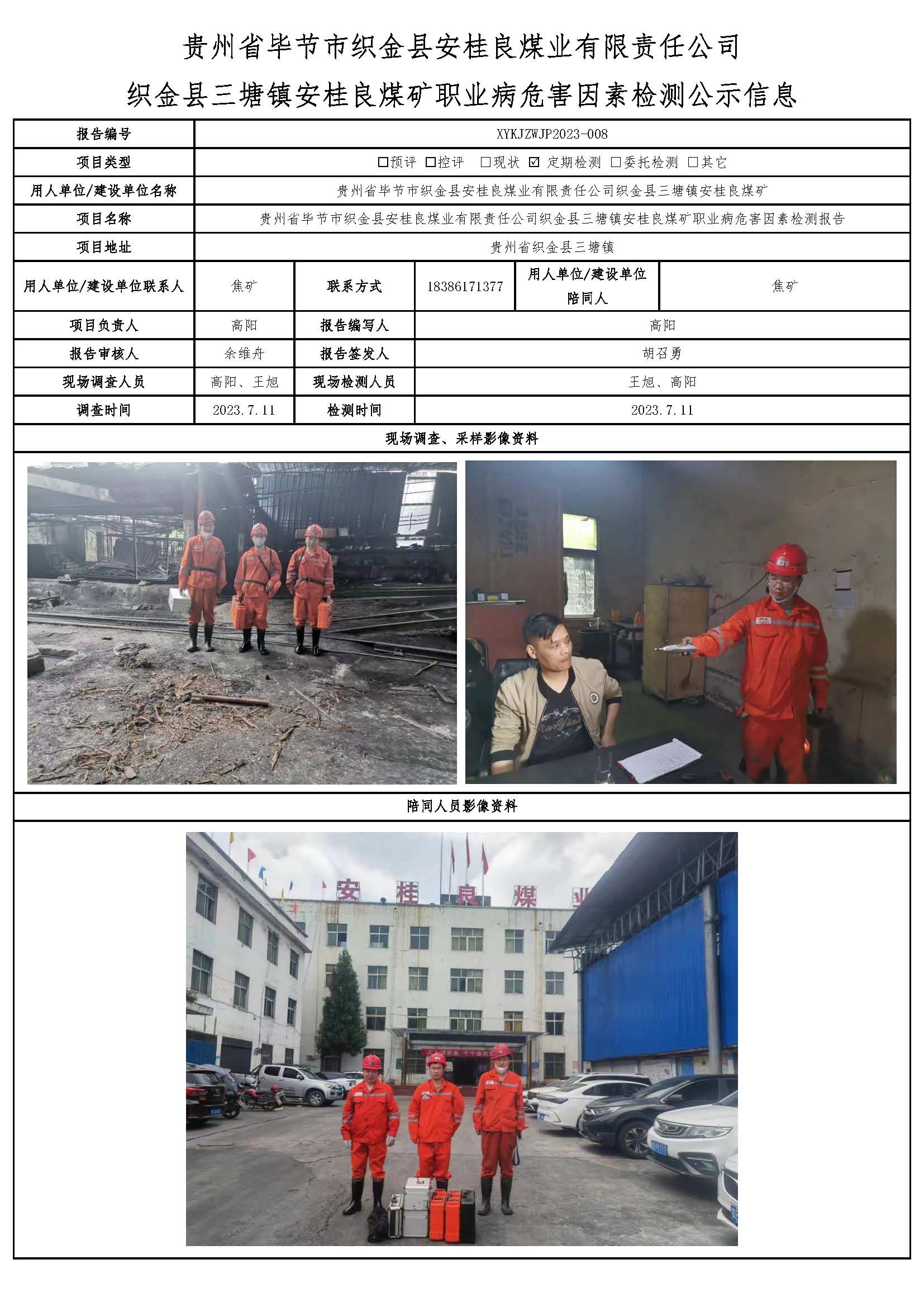 貴州省畢節(jié)市織金縣安桂良煤業(yè)有限責(zé)任公司織金縣三塘鎮(zhèn)安桂良煤礦職業(yè)病危害因素檢測(cè)公示信息