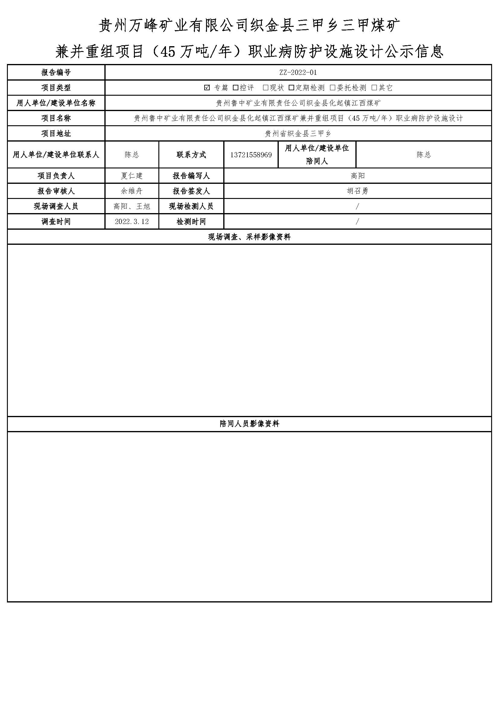 貴州萬峰礦業有限公司織金縣三甲鄉三甲煤礦 兼并重組項目(45萬噸/年)職業病防護設施設計公示信息
