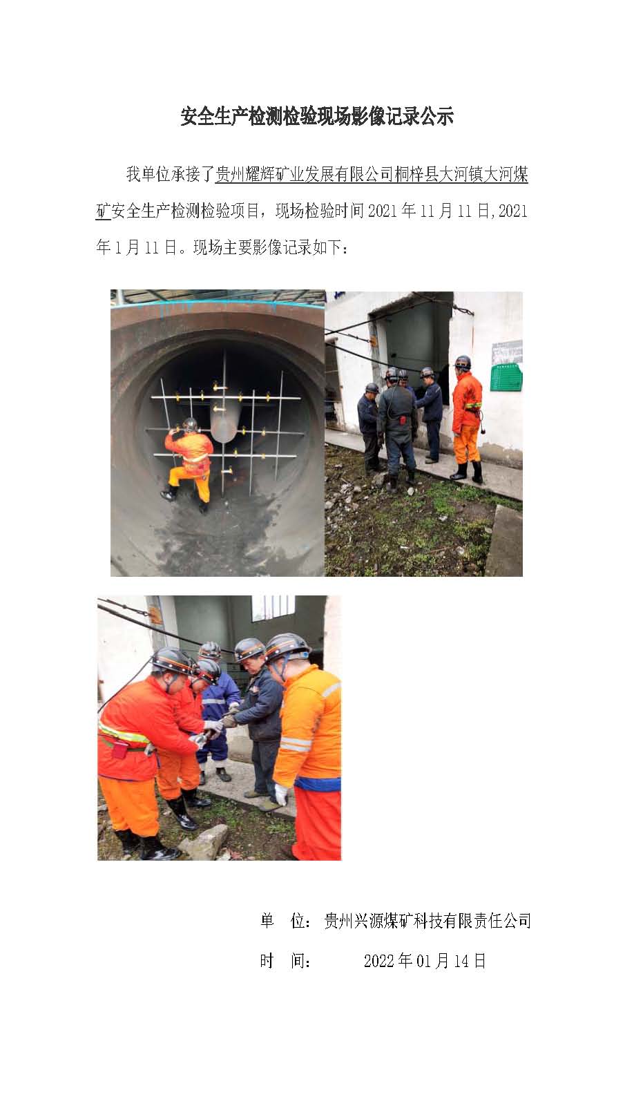 安全生產檢測檢驗現場影像記錄公示【貴州耀輝礦業發展有限公司桐梓縣大河鎮大河煤礦】