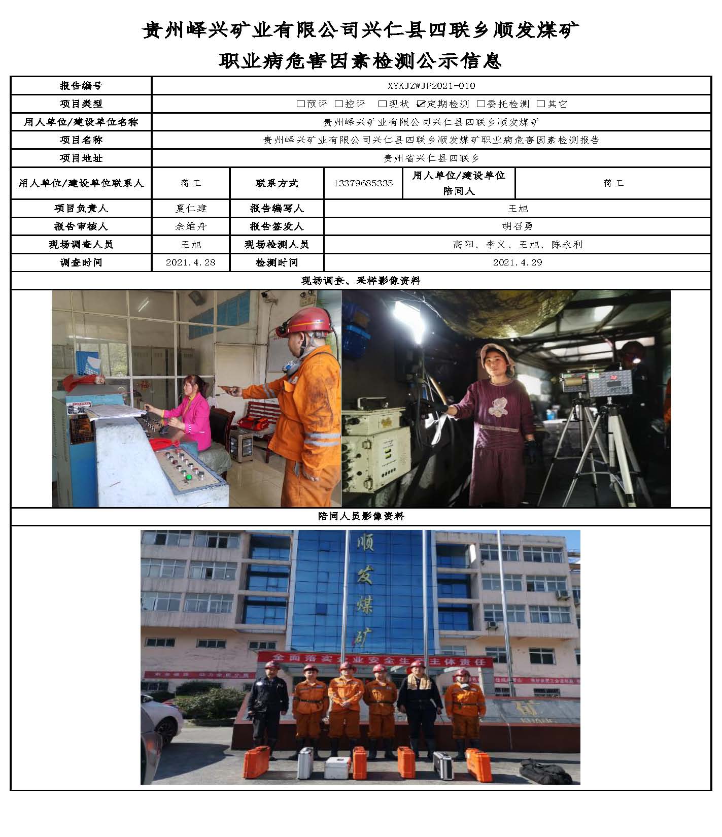 貴州嶧興礦業有限公司興仁縣四聯鄉順發煤礦 職業病危害因素檢測公示信息