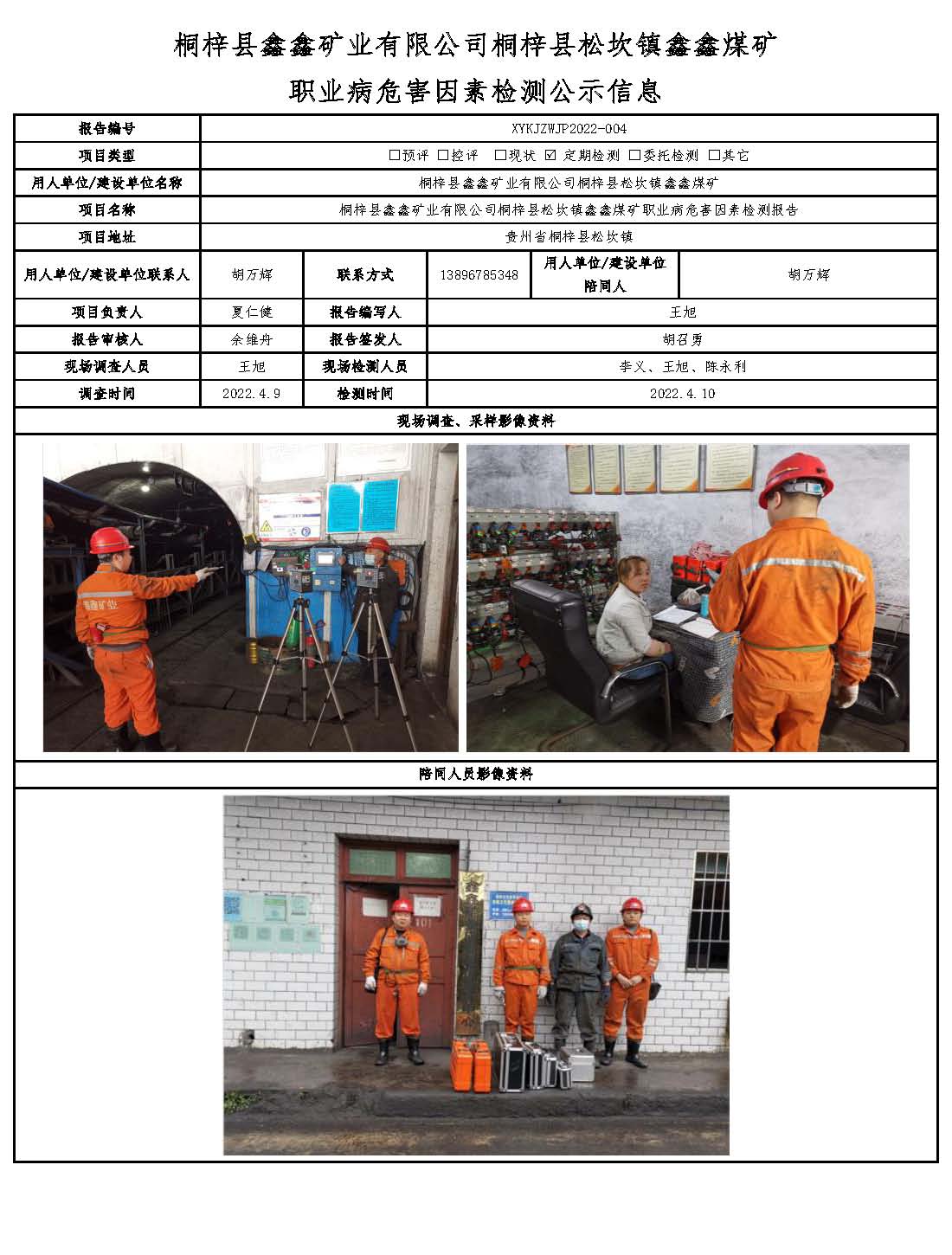 桐梓縣鑫鑫礦業有限公司桐梓縣松坎鎮鑫鑫煤礦職業病危害因素檢測公示信息