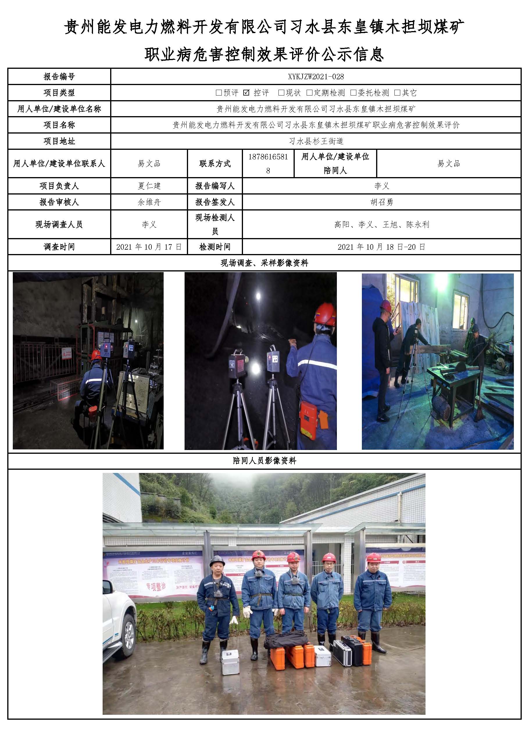 貴州能發電力燃料開發有限公司習水縣東皇鎮木擔壩煤礦 職業病危害控制效果評價公示信息