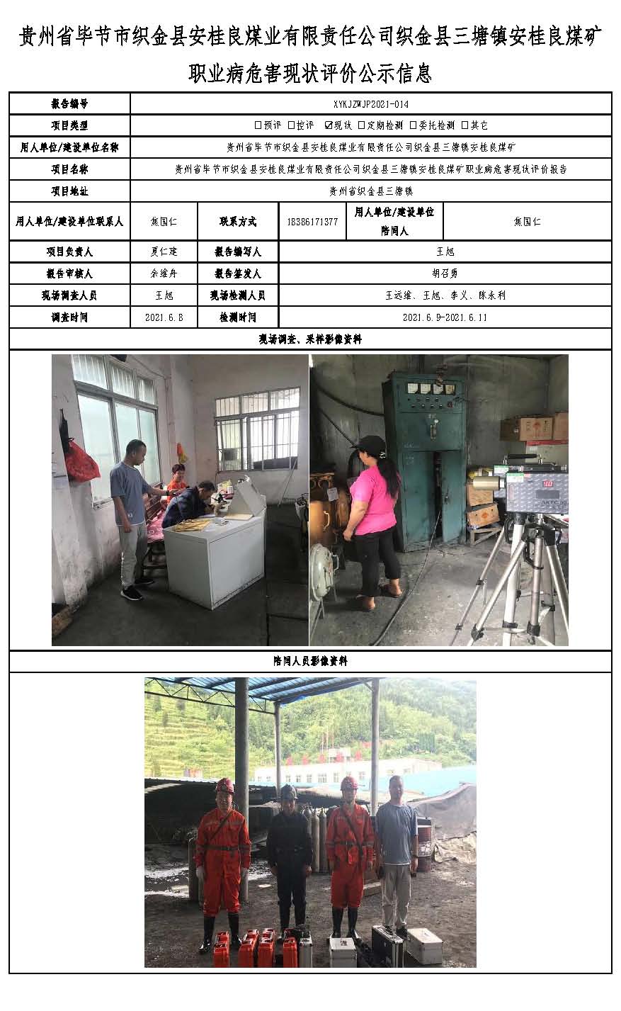貴州省畢節市織金縣安桂良煤業有限責任公司織金縣三塘鎮安桂良煤礦職業病危害現狀評價公示信息