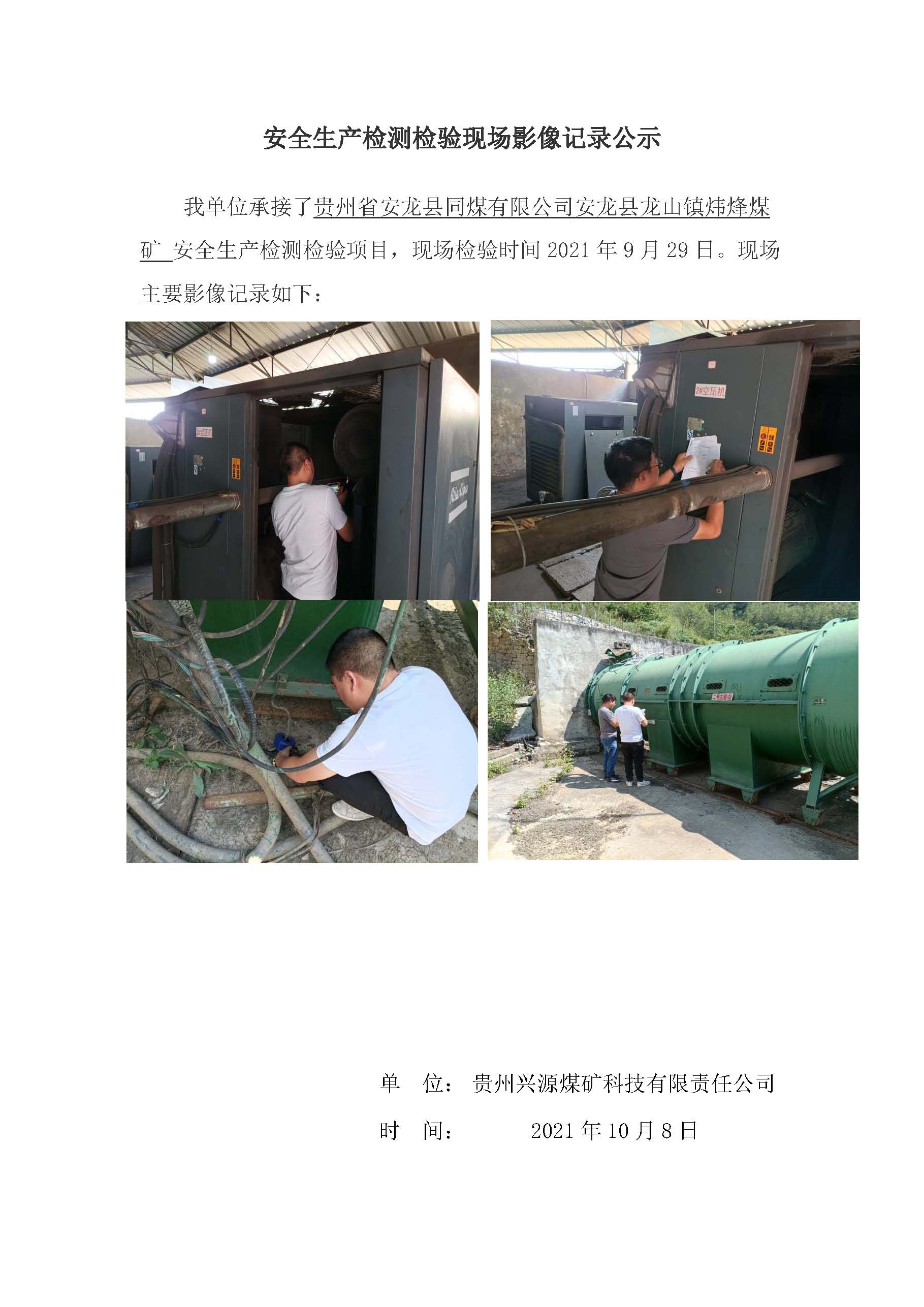 安全生產檢測檢驗現場影像記錄公示【貴州省安龍縣同煤有限公司安龍縣龍山鎮煒烽煤礦】