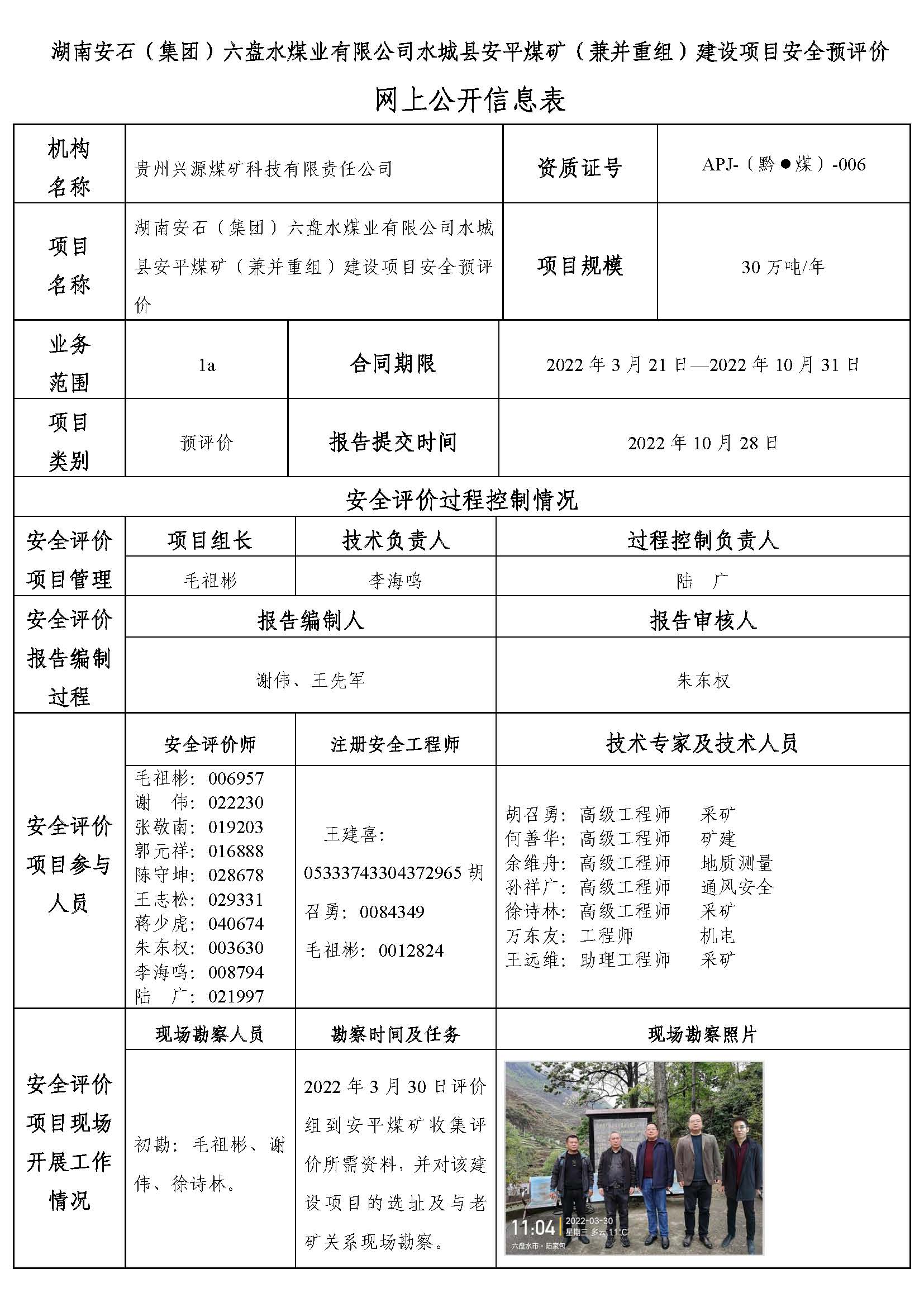 湖南安石(集團(tuán))六盤水煤業(yè)有限公司水城縣安平煤礦(兼并重組)建設(shè)項(xiàng)目安全預(yù)評價(jià)