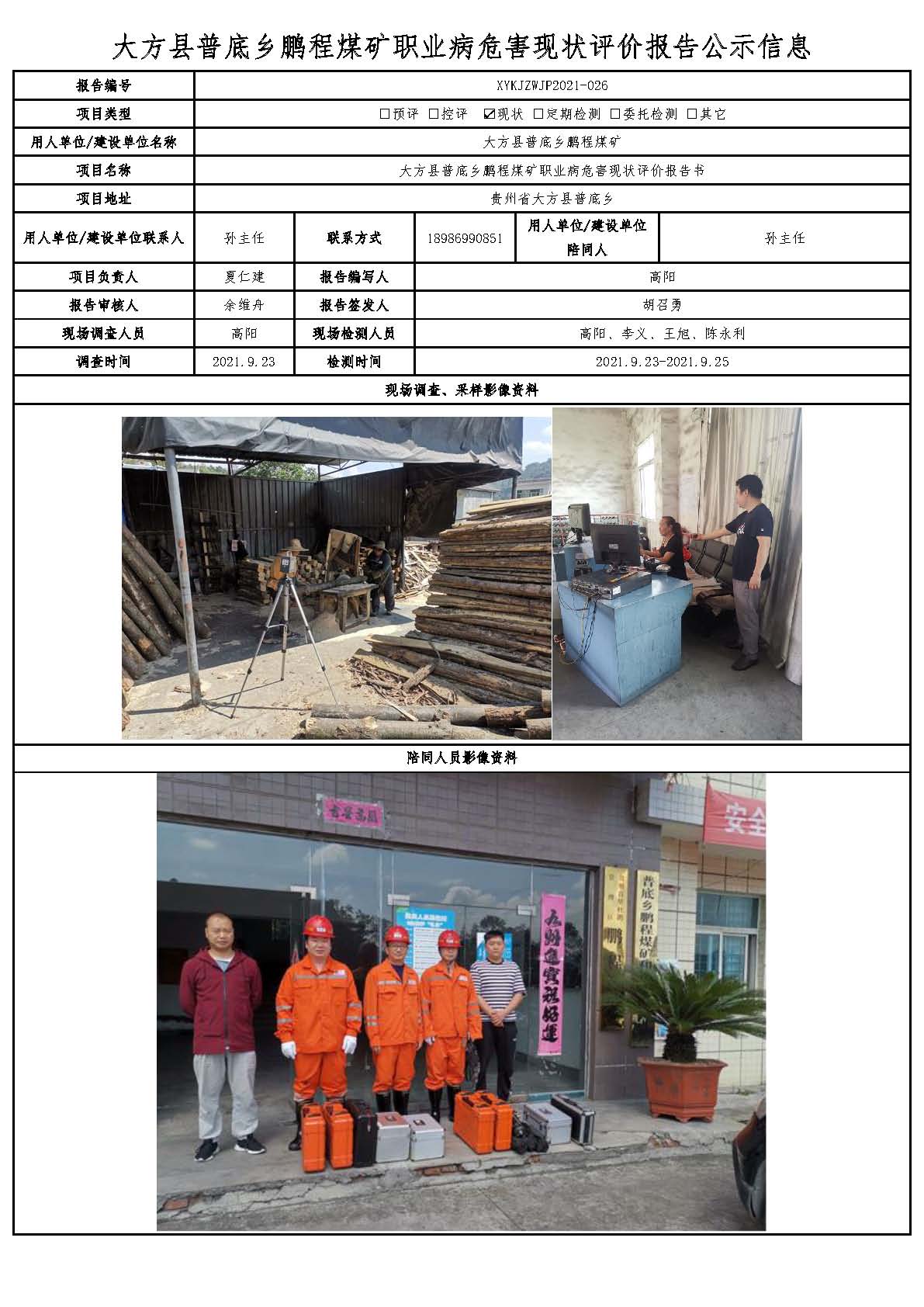 大方縣普底鄉鵬程煤礦職業病危害現狀評價報告公示信息