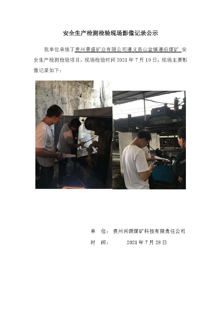 安全生產檢測檢驗現場影像記錄公示【貴州景盛礦業有限公司遵義縣山盆鎮遵沿煤礦】