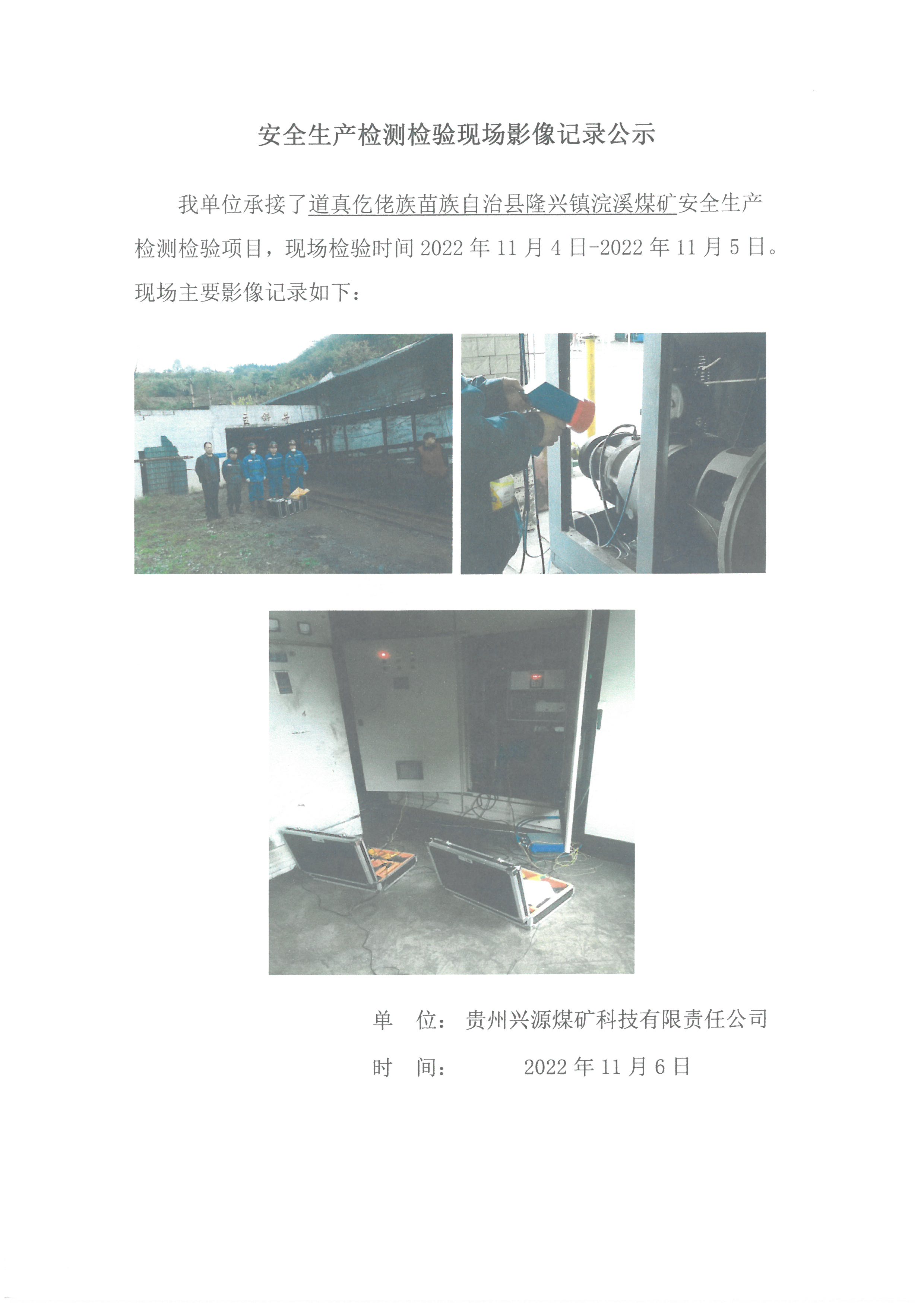 安全生產檢測檢驗現場影像記錄公示【 道真仡佬族苗族自治縣隆興鎮浣溪煤礦】