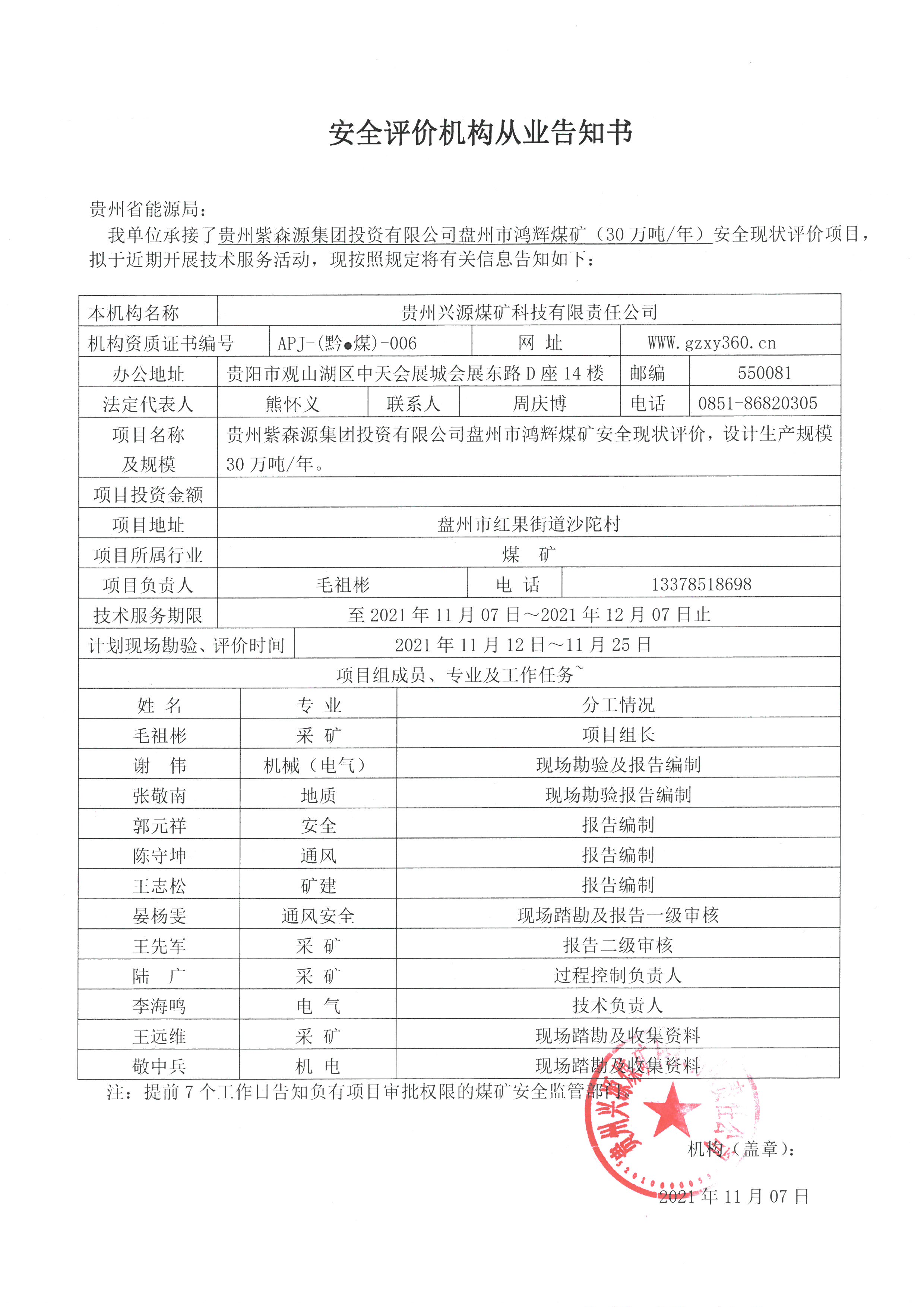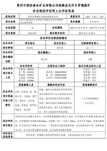 貴州中鋁恒泰合礦業(yè)有限公司納雍縣化作鄉(xiāng)羅嘎煤礦安全現(xiàn)狀評價網(wǎng)上公開信息表